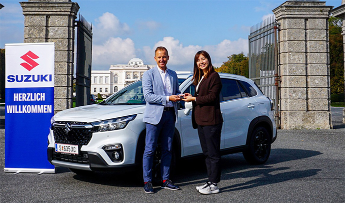 In addition to signing the sponsorship agreement, Suzuki will also support Tsubaki Miki's overseas tour activities, including lending a car. As part of the agreement, we have provided the S-CROSS, an SUV manufactured by Suzuki's Hungarian subsidiary Magyar Suzuki, on 16 October in Austria. The S-CROSS is equipped with Suzuki's unique 4WD system "ALLGRIP," delivering both the joy of driving and peace of mind on winding roads and challenging terrains such as snowy roads.
