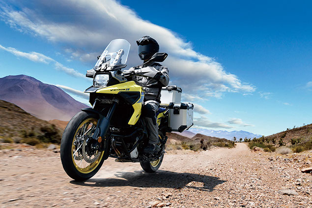 The distinctive styling incorporates elements of both Suzuki’s legendary DR-Z desert racer and the large off-road model DR-BIG. The characteristic beak design first adopted by Suzuki stays true to Suzuki’s heritage while also further evolving the design to be more aggressive and bolder for the new generation V-STROM.