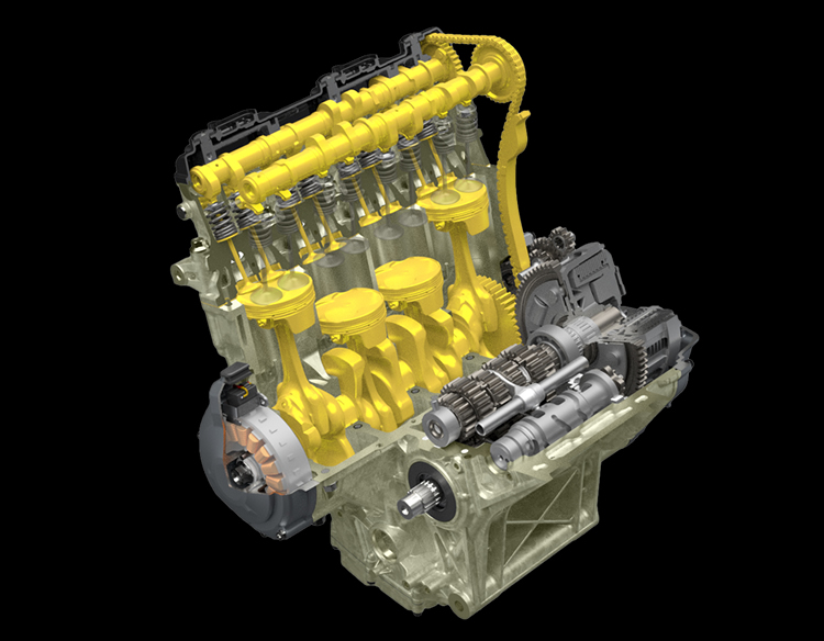 - The introduction of a wider new cam chain helps reduce friction loss.