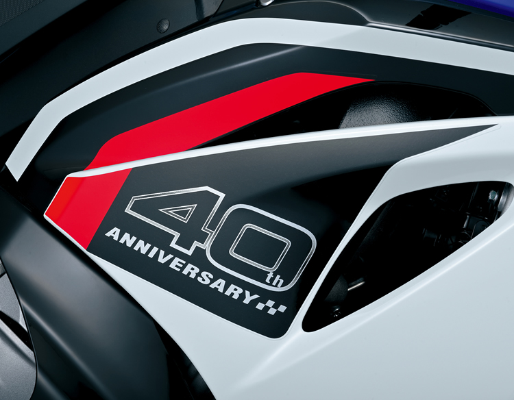 - 40th anniversary logos combine with new graphics that harken back to the original GSX-R and stripes that add aggressive, sporty flair.