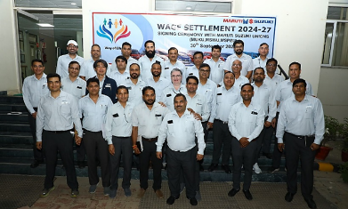 The wage settlement for blue-collared workers of the Company, which is effective for a period of 3 years from April 2024 to March 2027, was concluded. The agreement was jointly signed and concluded by the management of Maruti Suzuki India Limited (MSIL) and the three representative unions, comprising Maruti Udyog Kamgar Union, Maruti Suzuki Workers Union, and Maruti Suzuki Powertrain Employees Union. As per the terms of the settlement, there will be an increment in monthly salaries for all blue-collared workers of the Company spread over a period of 3 years, ensuring a substantial uplift in the overall remuneration. In addition, there are enhancements to the existing welfare, social security and other benefits. Even for its non-regular workers, the Company undertook a comprehensive revision of its wage and welfare policies.