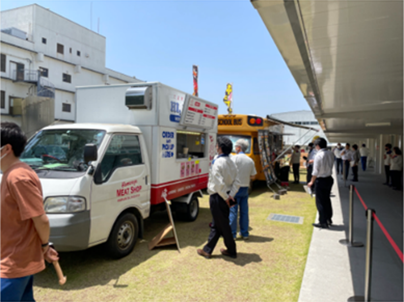 In addition to the employee cafeteria during lunchtime, food trucks also operate on the Company premises on certain days of the week. Not only do they offer café menu items such as crepes, shaved ice, sweets, and drinks, but they also serve lunch options like hamburgers, plate lunches, and soups. On sunny days, you can enjoy your meal on the benches in the lawn area. On January 15, 2024 we began providing vegetarian Indian food at our employee cafeteria at the head office. The food is prepared by a company offering restaurant business in Hamamatsu City, and the flavors were codeveloped by Suzuki’s employees from India to align with Indian tastes. At sites other than head office, the food is available by reservation. Since there are many requests to open kitchen cars from locations other than the headquarters, we are expanding openings to other sites such as factories.