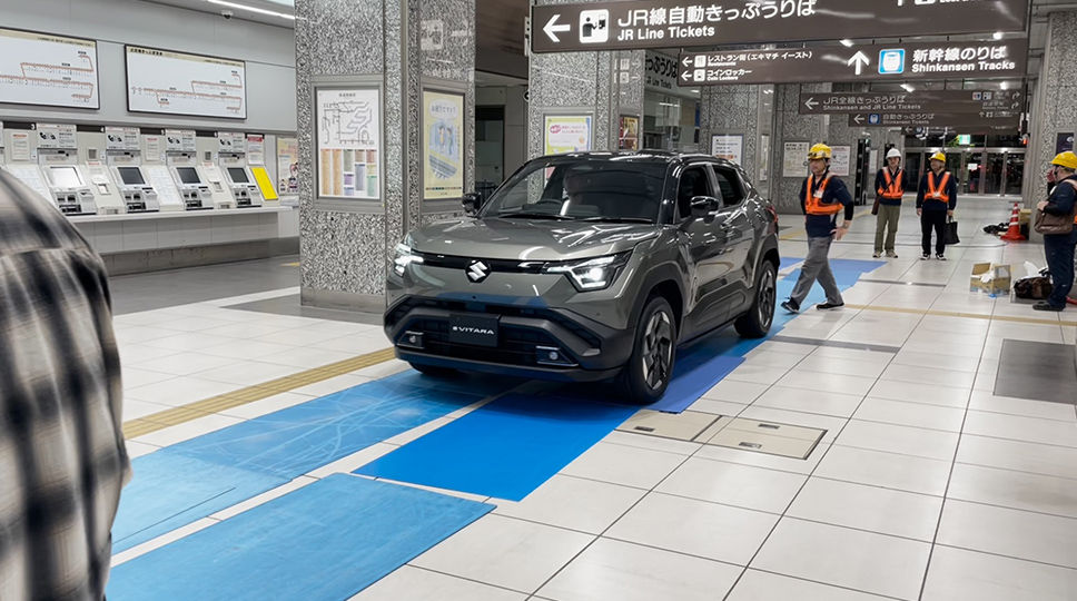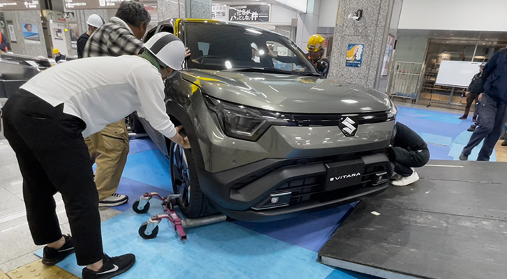 At the display, e VITARA was presented alongside a V2H system that supports two-way charging and discharging between the vehicle and the home. A setup member said, “Replacing the vehicle on display is demanding, as the work must be done at midnight and requires meticulous care. But all the effort feels worthwhile when we see passengers stopping to look at the models or notice related posts on social media.”
